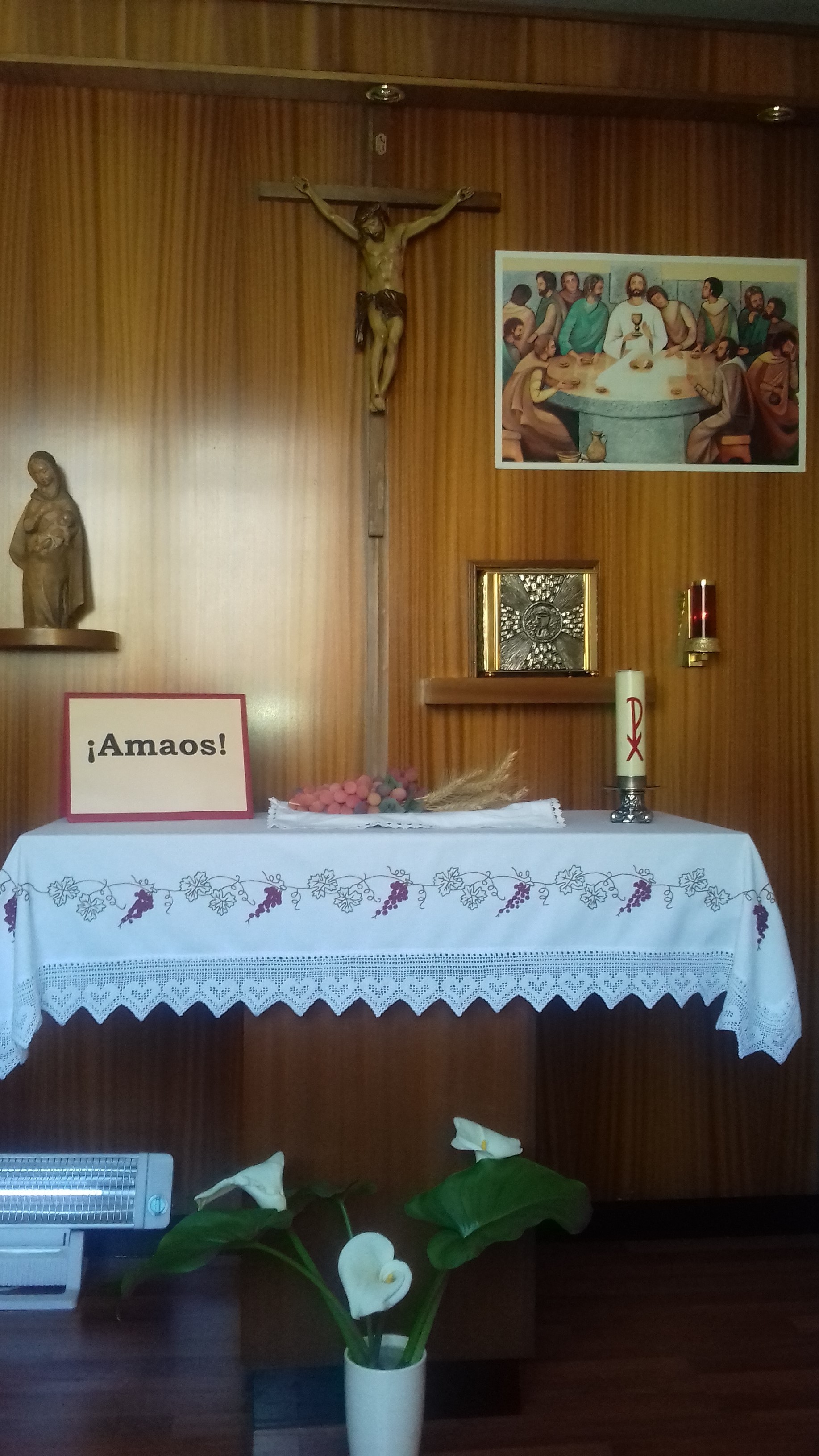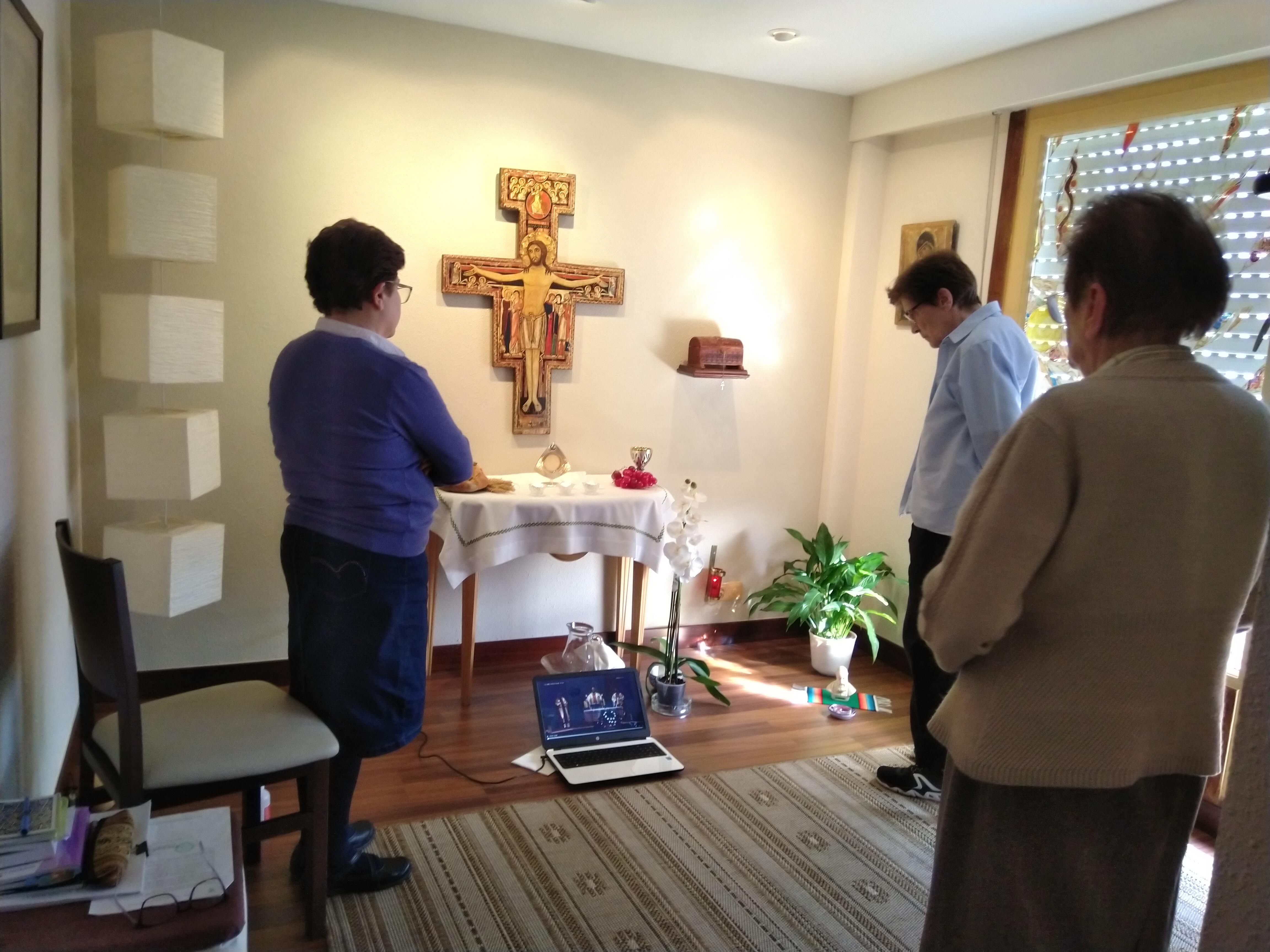 La comunidad empezamos el día con los símbolos propios del Jueves Santo como ambientación del día y rezamos Laudes solemne. Desayunamos de fiesta y tuvimos detalle de amor fraterno a pesar del aislamiento. En la tarde a las 17,00 horas nos reunimos en el oratorio y asistamos por streaming a la celebración de la Cena del Señor en la catedral de Bilbao, celebrada por el Sr Arzobispo, D. Mario Iceta, fue emocionante teniendo de fondo la situación mundial de aislamiento que estamos viviendo por el coronavirus. A continuación expusimos el Santísimo y tuvimos tiempo prolongado de oración.