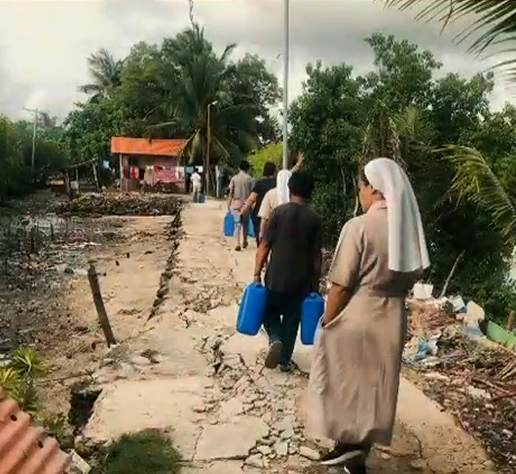 Las hermanas y los voluntarios, bajo el lema “In times of calamities – together we can” (En tiempos de calamidades – juntos podemos), organizaron —y lo siguen haciendo— asistencia de emergencia repartiendo alimentos, agua, ropa y tiendas de campaña (como se puede ver en el video de Facebook anexado del 10 de noviembre)